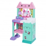 Wir präsentieren das Küchenset Cakey Cat Kitchen für Kinder aus der Welt von Gabbys magischem Haus. Diese Spielküche ist eine großartige Ergänzung zur Spielzeugreihe von Gabbys magischem Haus für Mädchen und Jungen, mit über 20 Küchenaccessoires und einer Höhe von über 91 cm. Cakeys Küche ist mit einem Herd, einer Spüle mit Abtropffläche, 10 Küchenutensilien und Geschirr, Haken über dem Fenster, 9 Spiellebensmitteln und einem Kühlschrank mit Fotos von Gabby und ihren Kätzchen ausgestattet, in dem ihr Spiellebensmittel, Zubehör und weiteres Spielzeug aufbewahren könnt. Die wunderschöne Küche enthält außerdem eine große Figur der Katze Cakey mit einem speziellen Ständer, der am Fenster befestigt werden kann, damit Cakey eure Küchenkreationen beobachten kann. Drückt die Taste am Cakey-Ständer und dreht die Herdknöpfe, um über 20 Geräusche und Sätze sowie 9 Koch-Soundeffekte, 3 Musiknummern und 11 Cakey-Sprüche aus der beliebten Serie Gabbys magisches Haus auf Netflix zu aktivieren. Wenn ihr die kleine Küche noch etwas erweitern möchtet, befindet sich unter dem Herd ein Regal, das speziell für den Bakey with Cakey Oven (separat erhältlich) entworfen wurde. Cakeys Küchen-Spielset ist ein unverzichtbares Zubehör für alle Fans von Gabbys magischem Haus, die damit Szenen aus ihren Lieblings-Kochsendungen nachspielen oder eigene kulinarische Kreationen für Familie und Freunde zubereiten können.