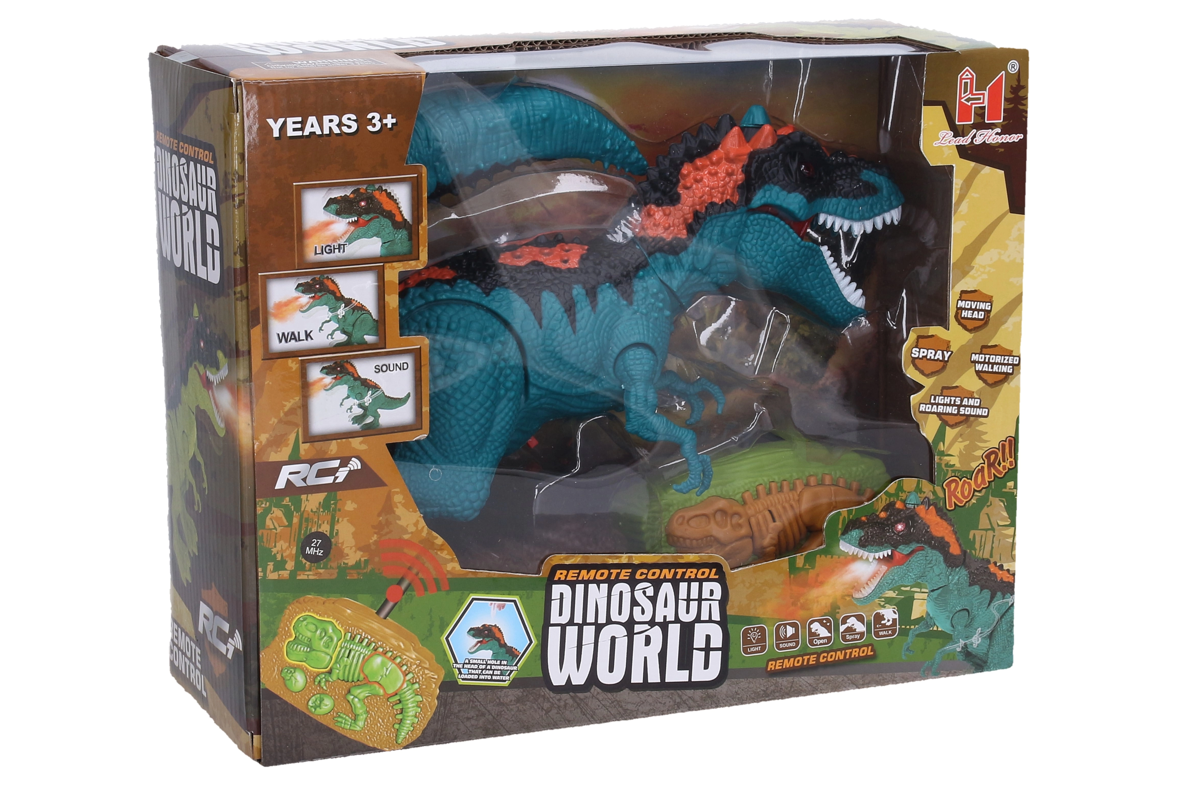 Der unterhaltsame ferngesteuerte Dinosaurier bietet realistisches Spielen mit Licht-, Sound- und Nebeleffekten (stößt Dampf aus). Steuerung auf 27 MHz, einfaches Pairing sowie Vorwärtsbewegung, Demo-Modus und Sofortstopp. Ideal als Geschenk für kleine Fans prähistorischer Kreaturen.