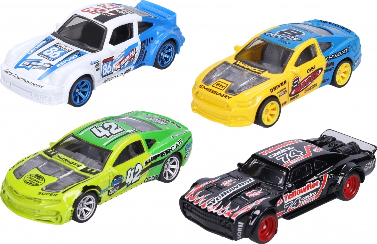 Kompaktes Metallauto mit einer Länge von 7 cm – perfekt für kleine Rennfahrer und Sammler. Es bietet eine robuste Metallausführung, Freilaufräder für eine sanfte Fahrt und eine Auswahl aus 4 Farbvarianten – Weiß, Gelb, Grün und Schwarz.