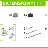 Das Aufzug-Erweiterungsset ist ein Set aus zusätzlichen Schienen und einem Aufzug, das die Bahn erweitert und abwechslungsreicher macht und den Transport von mehreren Kugeln gleichzeitig ermöglicht!