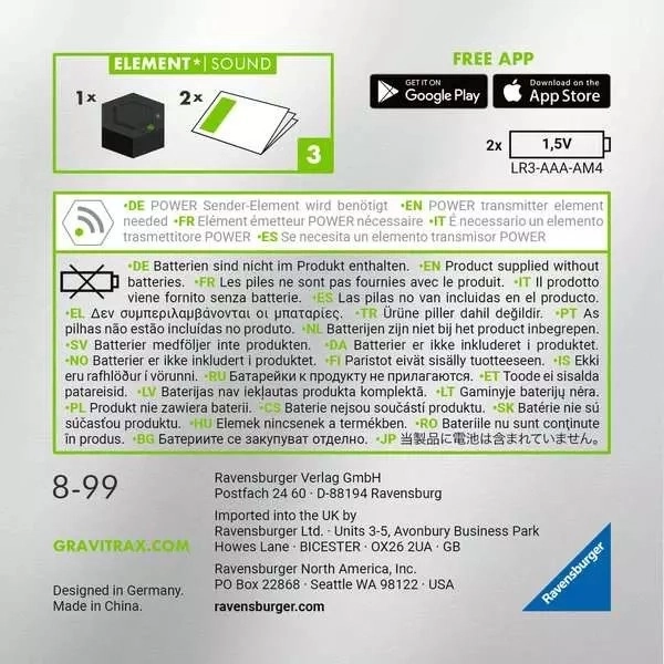 Das Modul ist mit allen GRAVITRAX-Serien kompatibel und kann mit weiteren Erweiterungen kombiniert werden. Dank des Baukastensystems lassen sich Aufbauten ständig erweitern und unendlich viele Streckenvarianten schaffen, die gleichzeitig Spaß machen und bilden.