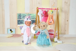 Der Teddybär ist in einem stylischen weißen Outfit gekleidet, das sich leicht mit anderen Stücken aus der BABY Born Kollektion kombinieren lässt.