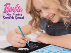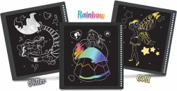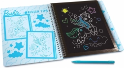 Entdecken Sie das Magie der Farben mit Barbie im faszinierenden Fantasy-Stil dank des Kratz-Blocks. Verwenden Sie den beigefügten Stift, um die leuchtenden Regenbogenfarben unter der schwarzen Oberfläche zu enthüllen.