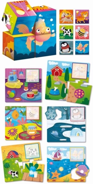 Entdecken Sie Holzblöcke mit Tieren, die Kindern helfen, logische Muster zu erkennen und ihre kognitiven Fähigkeiten zu entwickeln. Dieses Spielzeug ist sicher und schon für Kinder ab 1 Jahr geeignet: