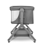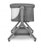 Wechseln Sie mühelos zwischen Beistellbett, freistehendem Bett und Wiege. Das horizontale Schaukeln beruhigt das Baby und hält gleichzeitig die Matratze eben für einen sichereren Schlaf.