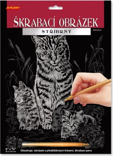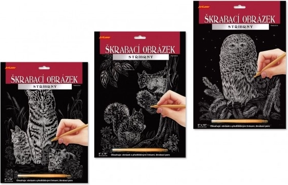 Das schwarz beschichtete Papier verbirgt einen glänzenden silbernen Untergrund, durch den jede freigekratzte Linie zu einem eindrucksvollen Detail wird. Die vorgedruckten Konturen lassen sich mit dem beiliegenden Stift leicht nachziehen – und gerne auch mit eigenen Mustern oder einem Rahmen ergänzen; der Fantasie sind keine Grenzen gesetzt.