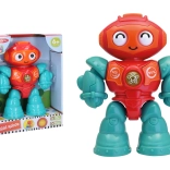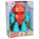 Der interaktive Roboter ist ein tolles Geschenk für jedes Kind, das von technologischen Abenteuern träumt. Der Roboter hat rotierende Augen, die die Stimmung anzeigen und manuell gedreht werden können. Dank zweier Tasten können Sie verschiedene Melodien und Soundeffekte aktivieren, die das Spiel mit leuchtenden Lichteffekten ergänzen.