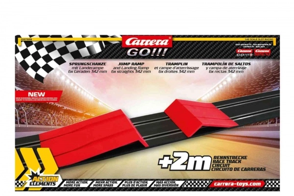 Bringen Sie noch mehr Adrenalin auf die Rennbahn. Dieses Action-Set ergänzt Ihre Strecke um einen spektakulären Sprung, der sowohl Geschwindigkeit als auch Präzision fordert. Die Teile im Maßstab 1:43 passen perfekt zu den Systemen CARRERA GO!!! und verlängern die Strecke um ganze 2 Meter.