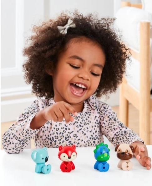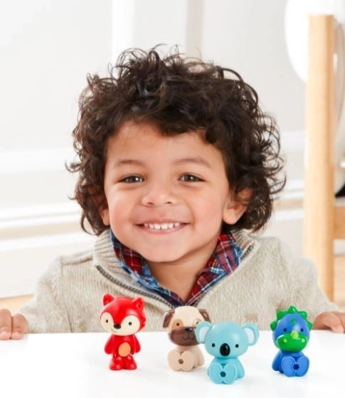 Das Skip Hop Zoo Crew Set bereichert jedes Kinderzimmer. Vier farbenfrohe Figuren – Preston Pug (Hund), Ferguson Fox (Fuchs), Kenzie Koala und Dakota Dino – sind für kleine Hände gestaltet, damit sie sich leicht greifen, tragen und in verschiedene Positionen stellen lassen. Dank der beweglichen Teile können sie stehen, sitzen und posieren – ideal, um kreatives Geschichtenerzählen zu fördern.