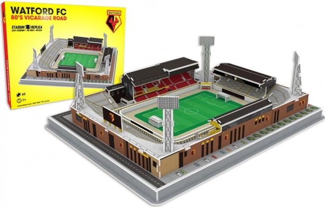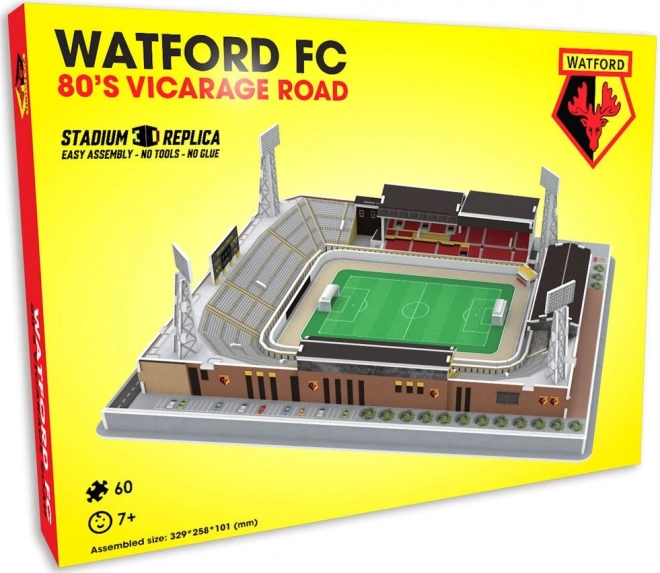 3D-Puzzle des Stadions Vicarage Road, Heimat des FC Watford, bietet Fußballfans großartigen Spaß ohne Schere und Kleber.