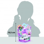 Stelle eine fantastische Masse her, die durch außergewöhnliche Weichheit besticht. Probiere die neuen Möglichkeiten dieser Masse aus. Gib das Pulver in den Becher, fülle Wasser bis zur Markierung auf, füge die Figur hinzu und schüttle, schüttle, schüttle. Lass die Masse dann einen Moment im offenen Becher stehen und der Spaß kann beginnen. Inhalt: Becher mit Pulver zur Herstellung der fluffigen Masse, Beutel mit Dekorationen, Messbecher und Figur. Alter: 6+.