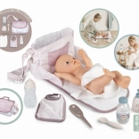 Im Set finden Sie eine umfangreiche Ausstattung mit 8 praktischen Zubehörteilen, die Rollenspiel, die Entwicklung der Feinmotorik und die Fantasie fördern. Ideal für unterwegs und für zu Hause – Kinder können das Baby füttern, wickeln und versorgen wie in echter Pflege.