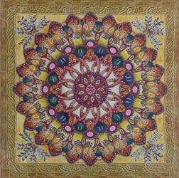 Die 7D-Diamantmalerei hebt das klassische 5D-Konzept auf ein neues Niveau: Die Steinchen haben unterschiedliche Formen, Größen und Oberflächenmuster und werden nur auf ausgewählte Teile des Motivs geklebt. Dadurch wirkt das fertige Bild ausdrucksstärker, funkelnder und räumlicher. Das Motiv der goldenen Mandala im Format 30 × 30 cm passt hervorragend in moderne Interieurs.