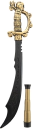 Die verzierte schwarze Klinge und der goldene Griff wirken eindrucksvoll und verleihen dem Kostüm ein glaubwürdiges Aussehen.