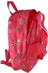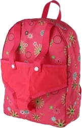Rosa Rucksack mit Tragegurt für Puppe mit Blumenmuster
