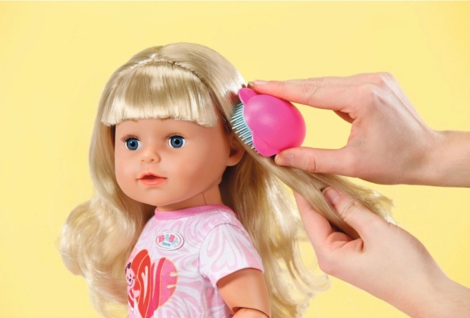 Spielen Sie mit der älteren Schwester von BABY born, die unglaubliche sieben realistische Funktionen bietet, die stundenlang Spielspaß garantieren. Die Puppe ist dank ihrer Gelenke bereit für jedes Abenteuer, da sie verschiedene Posen und Bewegungen einnehmen kann. Ihre langen blonden Haare warten darauf, mit Hilfe der im Paket enthaltenen Haaraccessoires gestylt zu werden.
