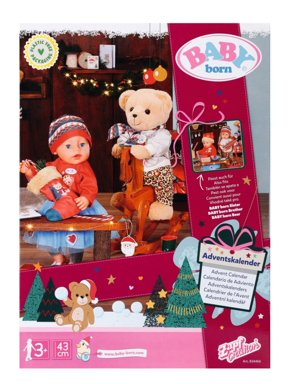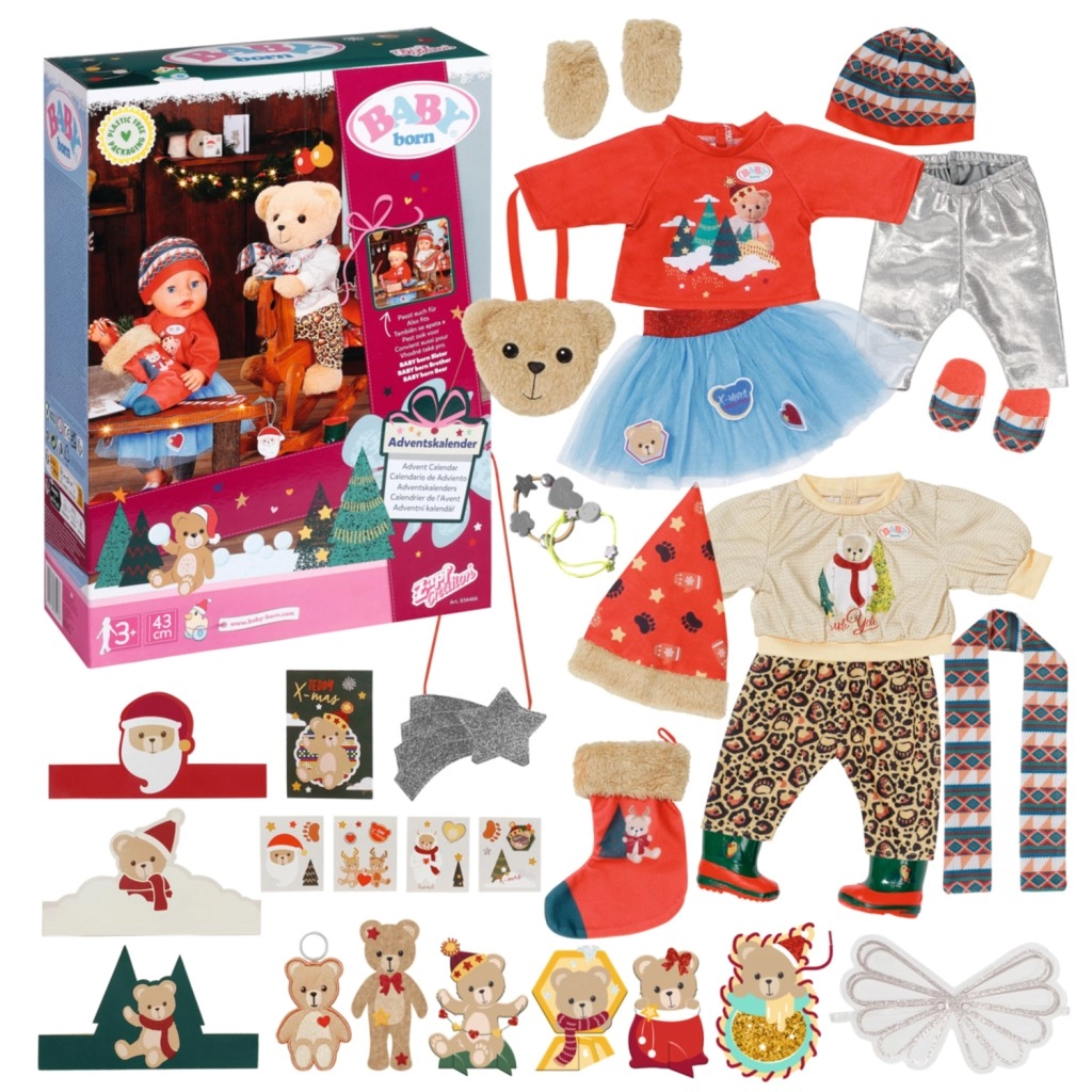 Der BABY born Adventskalender 2023 ist ein wahr gewordener Wunsch für alle kleinen Puppenliebhaber. Hinter jedem Türchen verbirgt sich ein niedliches Teil mit Bärenthema – von Pullovern über Röcke bis hin zu stylischen Accessoires. Kinder können ihre Puppe jeden Tag neu einkleiden und Fantasie und Entdeckerfreude genießen.