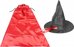 • Komplettset: Umhang + Hut für schnelles Verkleiden