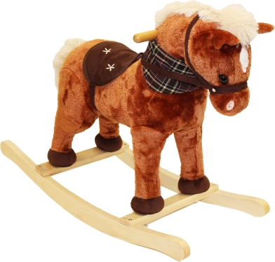 Das niedliche Schaukelpferd im Design eines braunen Pferdes erfreut jedes Kind. Es hat eine weiche Plüschoberfläche, stabile Holz-Kufen und bietet Soundeffekte, die per Knopf im Ohr aktiviert werden. Das Batteriefach ist am Bauch versteckt, enthalten sind 3× AG13/LR44 für den sofortigen Einsatz.