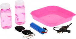 Diese Seifenblasenpistole verwandelt jeden Nachmittag in ein märchenhaftes Spektakel. Einfach die Lösung in die beiliegende Schale gießen, den Kopf eintauchen und den Abzug drücken – im Handumdrehen entstehen wunderschöne, bunte Blasen. Dank der LED-Beleuchtung wirken die Bläschen noch magischer, besonders in der Dämmerung.