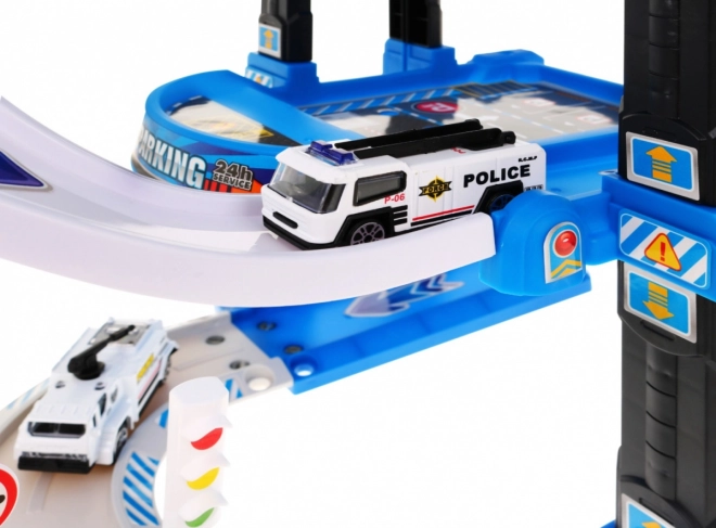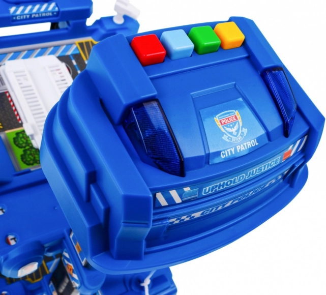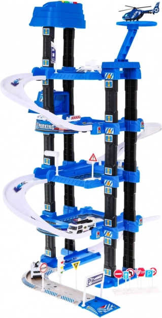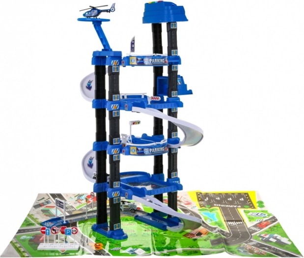 | | Das große mehrstöckige Polizei-Parkhaus ist für Kinder ab 3 Jahren geeignet. Das Parkhaus besteht aus fünf Ebenen, die mit einem Aufzug oder über eine Rutsche erreicht werden können. Auf dem Weg von Ebene zu Ebene trifft das Kind auf viele Attraktionen. Auf der unteren Ebene befindet sich eine Strecke, auf der Fahrzeuge fahren können, weiter oben auf den anderen Ebenen gibt es Parkplätze für Fahrzeuge. Ganz oben gibt es einen Landeplatz für einen Hubschrauber und einen Aufzug mit blinkenden Lichtern und Geräuschen, der nach oben und unten fährt. Zum Set gehören zwei Fahrzeuge, ein Hubschrauber, Verkehrszeichen sowie eine Unterlage mit Straßen und Gebäuden für das Parkhaus. Das Spielzeug wird mit 3 x AA 1,5V Batterien betrieben, die im Set enthalten sind. |