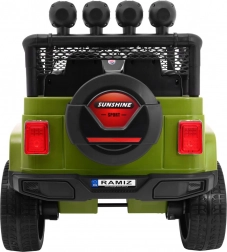 Das elektrische Kinderauto Raptor Drifter 4x4 in Grün ist ein robustes Offroad-Fahrzeug für kleine Abenteurer. Vier 45-W-Motoren liefern genügend Kraft im unebenen Gelände, während der sanfte Start ein komfortables und sicheres Anfahren ohne Ruckeln gewährleistet. Große EVA-Räder 30 × 19 cm mit doppelten hinteren Stoßdämpfern erhöhen Komfort und Stabilität.