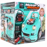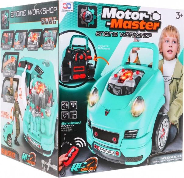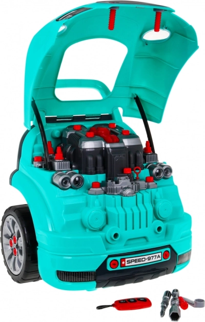Dieses umfassende Set des „kleinen Mechanikers“ bietet die Frontpartie eines Autos mit reich ausgestattetem Motor zum Montieren und Demontieren, ein funktionales Armaturenbrett mit Startknopf, ein Lenkrad mit Hupe und Warnsignal. Kinder können Zündkerzen, Räder und Motorteile „warten“, während Lichter und Geräusche über die beiliegende Fernbedienung gesteuert werden.
