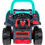 Startknopf mit Zündgeräusch, Lenkrad mit Hupe und Warnsignal. Die Scheinwerfer und der obere Motorteil leuchten für ein noch realistischeres Erlebnis.