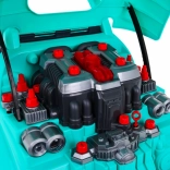 Enthalten sind 61 Teile, darunter Räder mit Radkappen, Schrauben, Werkzeug und Ersatzteile für den Motor. Das praktische Fach unter dem Lenkrad fasst Kleinteile und Zubehör, außerdem besitzt das Spielzeug einen Griff für leichtes Tragen. Ideal für Kinder ab 3 Jahren, die entdecken möchten, wie ein Auto funktioniert, und dabei Geschicklichkeit und Fantasie fördern.