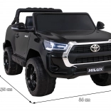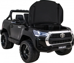 Das elektrische Kinderauto TOYOTA Hilux in elegantem Schwarz bietet dank der Kombination aus Leistung, Komfort und Sicherheit ein erstklassiges Fahrerlebnis. Der umschaltbare 4x4/2x2-Antrieb, weiche EVA-Räder und die hintere Federung meistern Pflaster wie auch leichtes Gelände. Eltern behalten mit der 2.4G-Fernbedienung mit drei Geschwindigkeiten und dem Not-STOP alles im Griff.