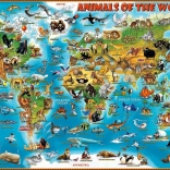 Puzzle für Kinder mit einer Weltkarte mit Tieren und großen XXL-Teilen für leichteres Zusammenbauen. Empfohlen für Kinder ab 6 Jahren. Abmessungen des fertigen Puzzles ca. 49 × 36 cm