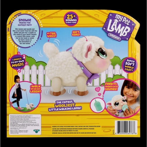 Entdecke die Magie des interaktiven Schäfchens Snowie, das sich wie ein echtes Lamm verhält. Es kann sich bewegen, wackelt mit dem Schwänzchen, wenn es läuft, und reagiert, wenn du es streichelst oder es mit der Flasche fütterst. Dank seiner flauschigen Ohren und des weichen Fells werden Kinder es sofort lieben.