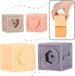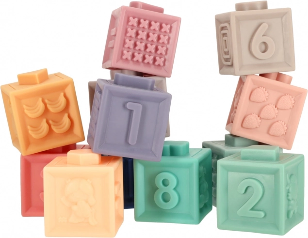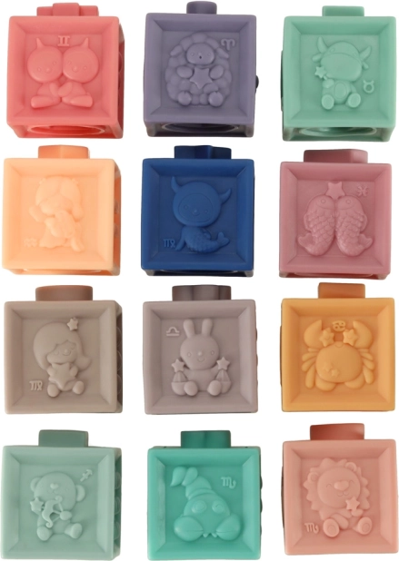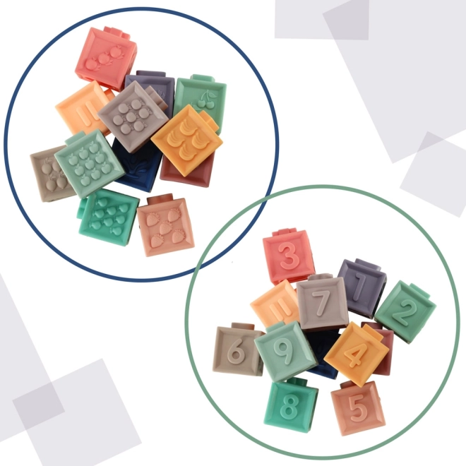 Dank des weichen, flexiblen Materials sind die Elemente schon ab 6 Monaten sicher und können auch als Beißring dienen. Beim Spielen stärken Kinder auf natürliche Weise Greifkraft und Augen-Hand-Koordination und trainieren logisches Denken beim Stapeln und ersten einfachen Gleichungen.