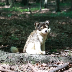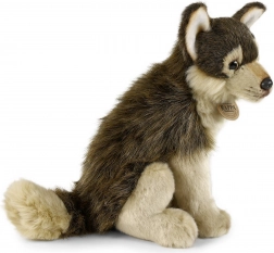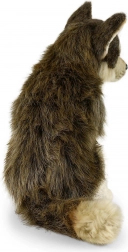 Detailreiche Farbgebung, Form und handgenähte Verarbeitung verleihen dem Spielzeug das authentische Aussehen eines Wolfs und eine lange Lebensdauer.