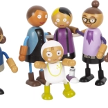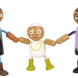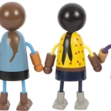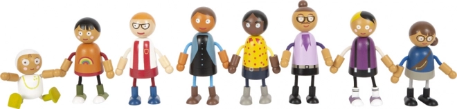Entdecken Sie die bunte Welt der Geschichten mit der flexiblen Holzpuppenfamilie. Zwei Elternpaare, drei Kinder und ein Baby in der Trage, das an weitere Figuren befestigt werden kann, bieten unzählige Spielszenarien. Dank der Kombination aus Holz und Textil sind die Puppen robust, detailreich verarbeitet und angenehm anzufassen.