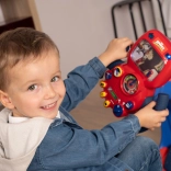 Schenken Sie Kindern die Welt der Rennen mit SPIDEY und seinen Freunden. Die stabile Kunststoffkonstruktion, der bequeme geformte Sitz und die 3-stufige Positionsverstellung hinter dem Lenkrad sorgen für Komfort beim langen Spielen. Das interaktive Lenkrad mit animierter Strecke, Lichtern und Sounds unterstützt Konzentration, Koordination sowie die Entwicklung der Fein- und Grobmotorik.