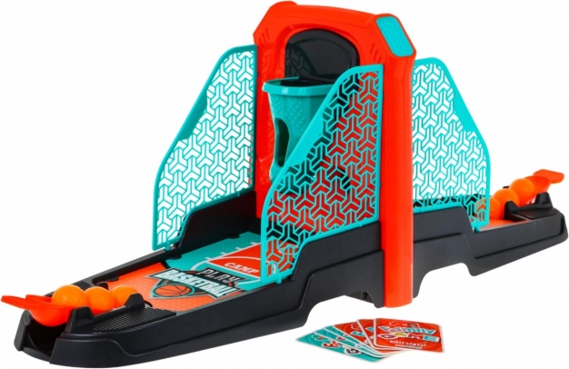 | Lieferumfang | - 2 Basketball-Spielfelder, - 6 Basketballbälle, - 2 Körbe, - 4 Seitenabdeckungen, - 2 Mechanismen zum Abschießen der Bälle, - Aufkleber. |
