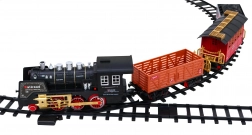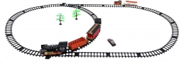 Dieses klassische Dampfbahn-Set auf Schienen begeistert kleine und große Zugfans. Die Lokomotive fährt sanft auf Befehl per Infrarot-Fernbedienung an, gibt realistische Fahr- und Pfeifgeräusche von sich, schaltet die Lichter ein und erzeugt eindrucksvollen Rauch für eine noch authentischere Bahnhofsatmosphäre.