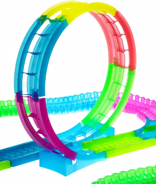 Diese große leuchtende Rennbahn ist für Kinder bereits ab 3 Jahren geeignet. Sie wirkt fluoreszierend und leuchtet im Dunkeln schön, was zusammen mit der LED-Beleuchtung des Autos erstaunliche Effekte erzeugt. Einfache Montage und leichte Bedienung machen sie zu einem großartigen Accessoire für jedes Kinderspiel.