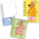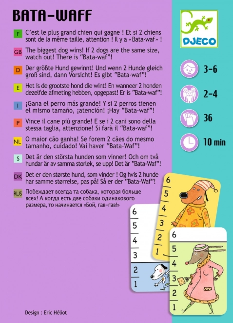 Das Spiel DJECO Bata-Waf ist ein fesselndes und einfaches Kartenspiel, das Kindern das Vergleichen von Größen beibringt und gleichzeitig die Aufmerksamkeit schult. Jeder Spieler deckt die oberste Karte auf, und wer den größeren Hund auf der Karte hat, gewinnt alle ausliegenden Karten. Wenn die gleiche Größe erscheint, erklingt das magische „Bata Waf“ und es folgt ein Stechen mit der nächsten Karte.