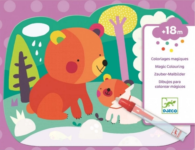 Die Wasser-Malbücher von DJECO bieten Kindern ab 18 Monaten einfaches und sauberes Gestalten ganz ohne Malkästen. Auf vier stabilen Karten im Format 21 × 26 cm erscheinen beim Kontakt mit Wasser niedliche Figuren – ein Bärchen, ein Kätzchen, ein Eulchen und ein Fuchs. Sobald das Wasser getrocknet ist, verschwindet das Bild und das Spiel kann von vorn beginnen.