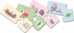 Das Puzzle-Spiel mit dem Motiv Peppa Wutz bietet eine großartige Gelegenheit, Beobachtungsfähigkeiten und logisches Denken zu fördern. Dieses Lernspiel enthält 14 zweiteilige Puzzles, die getrennt, gründlich gemischt und dann mit den Bildern nach oben auf den Tisch gelegt werden müssen.