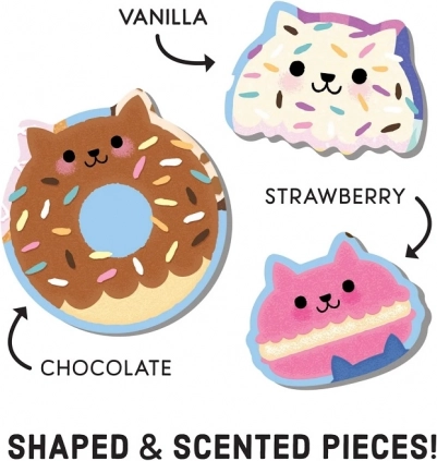Tauchen Sie ein in eine Welt der Düfte und Farben mit diesem originellen Puzzle, bei dem sich Puzzeln in ein multisensorisches Erlebnis verwandelt. Kinder freuen sich über drei wiederkehrende Düfte – Erdbeer-, Vanille- und Schokoladenduft – sowie über das farbenfrohe, detailreiche Bild eines Katzencafés. Dank der matten Oberfläche sind die Farben originalgetreu und reflektieren kein Licht, sodass das Puzzeln unter allen Bedingungen angenehm ist.