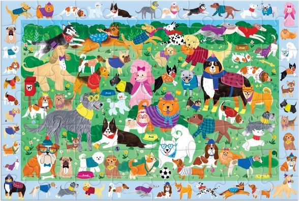 Das Mudpuppy Puzzle Legen und Suchen: Hundetag bietet eine clevere Kombination aus Puzzeln und Suchspiel, die Beobachtungsgabe, Geduld und Feinmotorik fördert. Nach dem Zusammensetzen der hundevollen Szene können Kinder mehr als 40 versteckte Figuren im Rahmen rund um das Bild suchen – die ideale Unterhaltung für Kinder ab 4 Jahren.