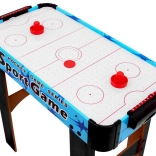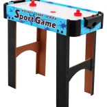 Genießen Sie dynamischen Spaß mit dem kompakten Tisch-Airhockey. Die Spielfläche mit Öffnungen und Luftstrom erzeugt ein Kissen, auf dem der Puck reibungslos ohne Widerstand gleitet. Zwei Spieler stehen sich gegenüber und versuchen mithilfe der Schläger ("Grzybki") den Puck ins gegnerische Tor zu schießen.