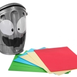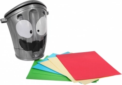Im Lieferumfang enthalten sind 24 Stück buntes Papier, die Müll symbolisieren. Der Bewegungsbereich des Deckels ist einstellbar, einschließlich der Möglichkeit, ihn vollständig zu blockieren. Gewinnt, wer die meisten Papierstücke in den Eimer wirft.