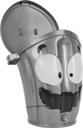 Der Mülleimer bewegt sich und reagiert auf Bewegungen, was Kinder nicht nur unterhält, sondern sie auch zur Benutzung motiviert.
