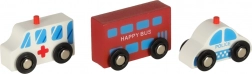Dieses Holzset ermöglicht es Kindern, ihre eigene Stadt mit verschiedenen Fahrzeugen und Gebäuden zu erschaffen.