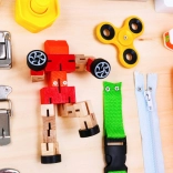 Farbenfrohe, haptische und hörbare Komponenten halten Kinder beschäftigt und schulen ihre Konzentration und Aufmerksamkeit. Verschiedene sensorische Erfahrungen helfen bei der Entwicklung kognitiver Fähigkeiten.