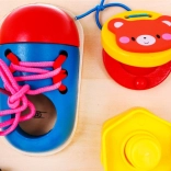 Die hölzerne multifunktionale Tafel ist so gestaltet, dass sie Kindern sensorische und manipulative Erlebnisse bietet. Sie enthält Elemente, die ein Kind im Alltag sieht und hilft zu verstehen, wie sie funktionieren. Sie beinhaltet Geräusch- (Glocke) und Lichtelemente (Schalter mit Diode), was ihren interaktiven Wert erhöht. Die Tafel wird mit 2 AA-Batterien betrieben, die nicht im Lieferumfang enthalten sind.